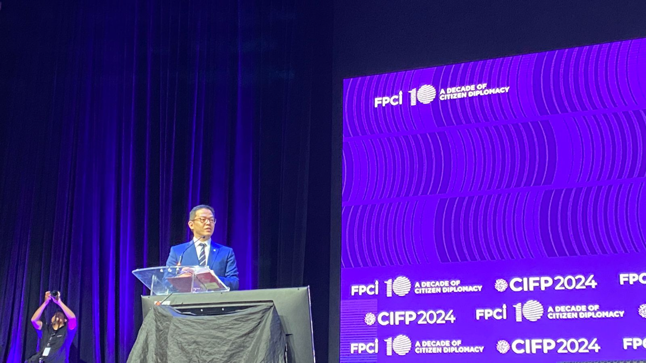 Menteri Luar Negeri Sugiono dalam acara CIFP di Mal Kota Kasablanka, Jakarta, Sabtu, 30 November 2024. (Medcom.id / Marcheilla Ariesta)