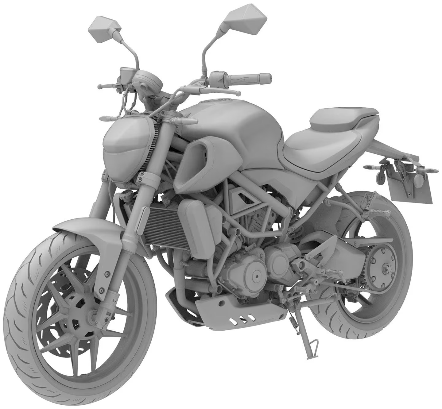Gaya Bodywork Roadster Benda cukup terkendali, dengan bentuk ekor pendek dan bungkuk ke depan yang Mempunyai nuansa Ducati Monster tanpa meniru plek Ketiplek Roadster Laris manis Ducati tersebut. Lampu depannya sedikit Bukan Normal, dengan tonjolan yang Jernih di bagian atasnya. Sasis Tralis, Swing-arm Single di belakang memperkuat suspensi depan Upside Down.