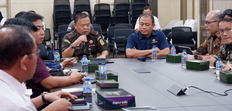 RAPAT perdana Golongan Kerja (Pokja) Desk Koordinasi Penerimaan Devisa Negara digelar di Gedung Istimewa Kejaksaan Mulia, Jakarta, Rabu (18/12). Rapat yang dipimpin Sekretaris Jaksa Mulia Muda Intelijen Sarjono Turin itu menyoroti empat isu Krusial yang menyebabkan kebocoran penerimaan negara.