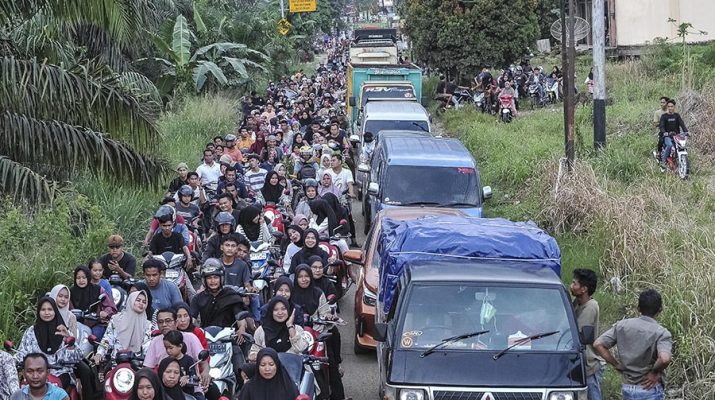 Foto udara Anggota terjebak kemacetan panjang di jalan alternatif Padang-Tebo, Jorong Seberang Piruko, Dharmasraya, Sumatera Barat, Rabu (5/3/2025). Jalan yang disiapkan Pemda setempat sebagai salah satu jalur alternatif Anggota yang yang terdampak amblasnya jalan nasional di Desa Sirih Sekapur, Bungo tersebut mengalami kemacetan panjang akibat sempitnya ruas jalan dan meningkatnya volume kendaraan pada waktu-waktu tertentu. ANTARA/Wahdi Septiawan/gus