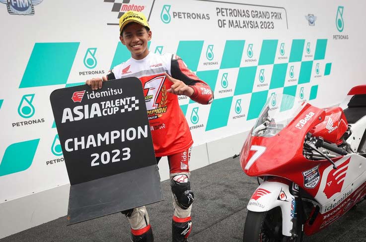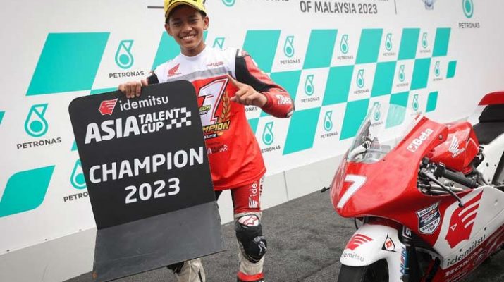 liputanindo.com – Veda Ega Pratama mencetak sejarah sebagai pembalap Indonesia pertama yang merebut gelar Juara bengengsi balapan kadet Asia Talent Cup setelah memenangkan Race 2 balapan di Sepang. Namanya berada di antara nama nama Juara ATC sebelumnya seperti Kaito Toba, Ayumu Sasaki, Billy Van Eerde, Sho Nishimura, Taiyo Furusato, dan Hakim Danish. Belum selesai ATC 2023 karena Tetap Terdapat dua balapan terakhir pekan depan sudah banyak pertanyaan dari netizen, akan balapan di mana kira-kira Veda Ega Pratama tahun 2024 nanti?