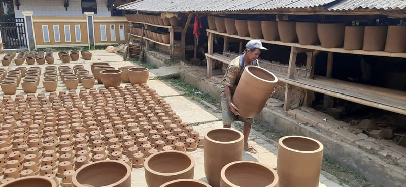 “Alhamdulillah cuaca yang panas, proses penjemuran bisa cepat. Kalau musim hujan bisa sampai satu bulan proses penjemuran. Begitu musim panas paling lama 10 hari sudah kering,” kata Irwan salah seorang perajin keramik Plered, Minggu (8/9).