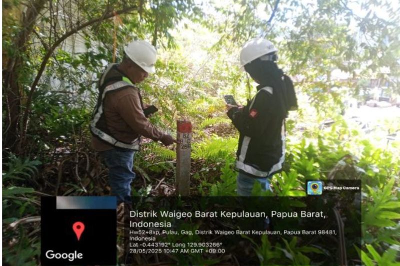Pengecekan pal batas Areal Penggunaan Kawasan Hutan di PT GN oleh Tim Gakkum Kemenhut sebagai bagian puldasi di lapangan tindak lanjut maraknya isu lingkungan di Kabupaten Raja Ampat, Papua Barat Daya pada 27 Mei-2 Juni 2025. ANTARA/HO-Gakkum Kemenhut