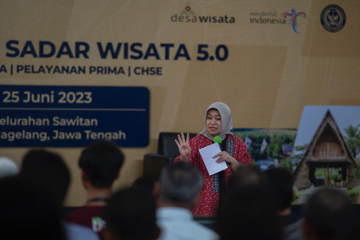 “Eksis tiga komponen Krusial dalam pengembangan satu destinasi, yakni atraksi, amenitas dan aksesibilitas atau yang Bisa disebut 3A. Tapi, tiga komponen ini Kagak akan Bisa berarti kalau human resource-nya atau sumber daya Sosok Kagak diangkat kualitasnya atau ditingkatkan peranannya,” ucap Martini Demi membuka kegiatan “Sosialisasi Sadar Wisata 5.0” di Desa Wisata Sawitan, Kabupaten Magelang, Jawa Tengah, Minggu (25/6).