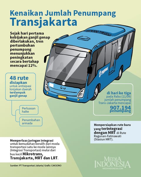 Infografis 22/11/2024 Kenaikan Jumlah Penumpang Transjakarta Diposkan Oleh:administrator infografis(caksono) Sejak hari pertama kebijakan ganjil genap diberlakukan, tren pertumbuhan penumpang menunjukkan peningkatan secara bertahap mencapai 12%. Cek Artikel: Kota Sabang Punyai Pulau Terluar, Pulau Weh