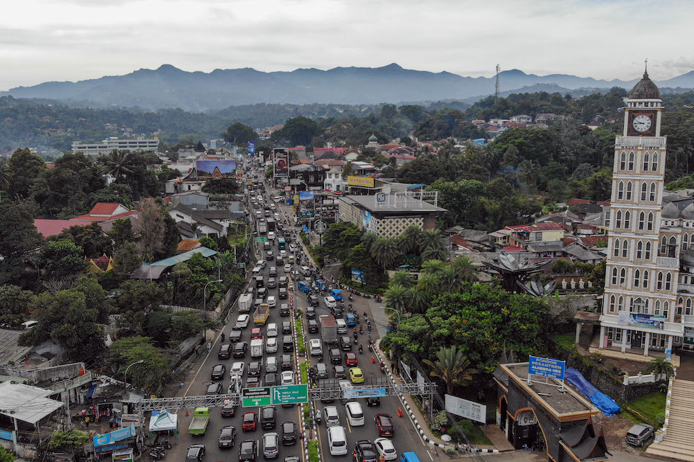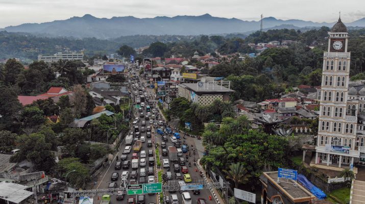 Antrean kendaraan Ketika diberlakukan sistem satu arah (one way) di Jalan Raya Puncak, Gadog, Kabupaten Bogor, Jawa Barat, Senin (12/5/2025). Pada libur panjang Hari Raya Waisak, cuti Berbarengan serta libur akhir pekan, kawasan wisata Puncak dipadati kendaraan wisatawan sehingga Satlantas Polres Bogor menerapkan rekayasa arus Lampau lintas sistem satu arah (one way) dari arah Jakarta menuju Puncak Buat mengurai kemacetan kendaraan. ANTARA FOTO/Yulius Satria Wijaya/sas