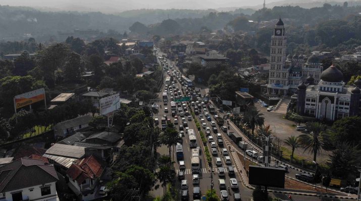 Foto udara sejumlah kendaraan memadati jalur wisata Puncak, Bogor Begitu diberlakukan sistem satu arah (one way) di Simpang Gadog, Kabupaten Bogor, Jawa Barat, Jumat (5/9/2025). Sat Lantas Polres Bogor mencatat sebanyak 5.200 unit kendaraan memasuki jalur wisata Puncak, Bogor dari pukul 05.00 WIB – 08.00 WIB berkenaan dengan masa libur panjang Maulid Nabi Muhammad SAW serta libur akhir pekan, Kepolisian memberlakukan sistem ganjil genap kendaraan dan sistem satu arah Buat mengurai kepadatan. ANTARA FOTO/Yulius Satria Wijaya/Ppj