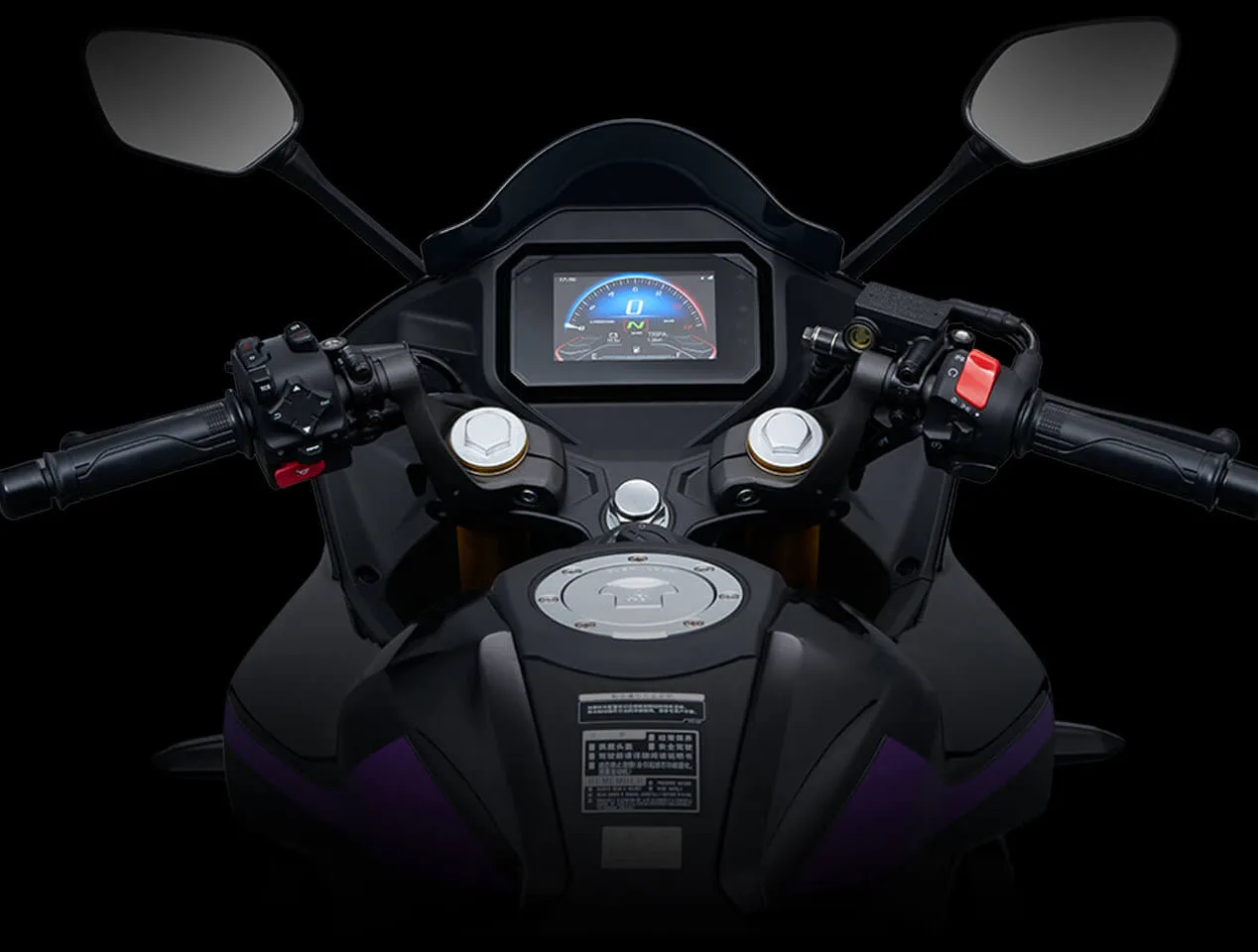 Posisi setangnya sendiri Guna model clip-on (setang jepit), tapi diposisikan agak tinggi di atas triple clamp. Jadi, meskipun tampilannya sport banget, posisi riding-nya dijamin nggak bakal bikin punggung minta ampun, alias Tetap cukup tegak dan bersahabat buat dipakai harian.