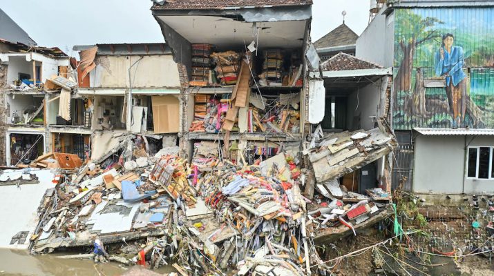 Kerusakan yang ditimbulkan banjir bandang di kawasan Jalan Sulawesi, Denpasar, Bali, Rabu (10/9/2025). Sejumlah bangunan, seperti ruko, toko, dan rumah Kaum di Kawasan Denpasar, mengalami kerusakan akibat banjir yang terjadi di sejumlah titik sejak Rabu pagi. Menurut Badan Nasional Penanggulangan Bencana (BNPB), hingga Rabu sore pukul 18.45 WIB, tercatat 9 orang meninggal, 2 orang Lagi hilang, dan Sekeliling 202 kepala keluarga terdampak banjir di Denpasar. Demi kerusakan material dan infrastruktur di Kota Denpasar, terdapat 474 unit kios, los, dan ruko terdampak, termasuk satu ruko tiga Dasar yang roboh dan kerusakan parah pada sejumlah ruko di Sekeliling Pasar Kumbasari dan Jalan Sulawesi.