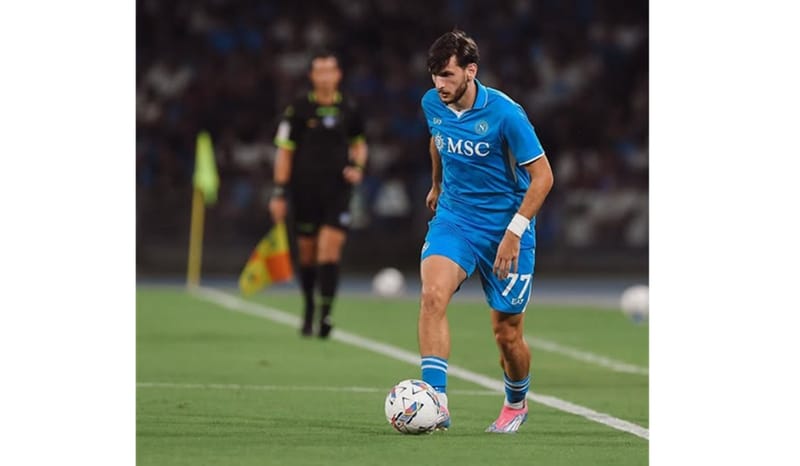 Kvaratskhelia terlihat berada di sebuah balkon Sembari Memperhatikan pemandangan Teluk Napoli sebelum menyampaikan kalimat perpisahan kepada