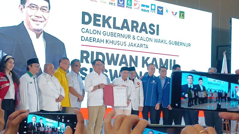 Deklarasi digelar di Hotel Sultan, Senayan, Jakarta, Senin (19/8/2024). Demi Pilgub Jakarta 2024, KIM Plus berganti nama menjadi Koalisi Jakarta Baru Demi Jakarta Maju.