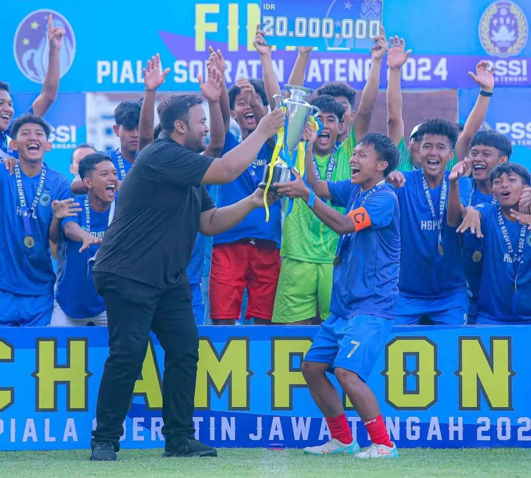 Liputanindo.id – Tim Hati Beriman FC (HB FC) Begitu selebrasi setelah berhasil menjuarai piala Soeratin U-17 yang digelar di Lapangan Kota Barat Surakarta, Rabu (20/11/2024). (Istimewa)