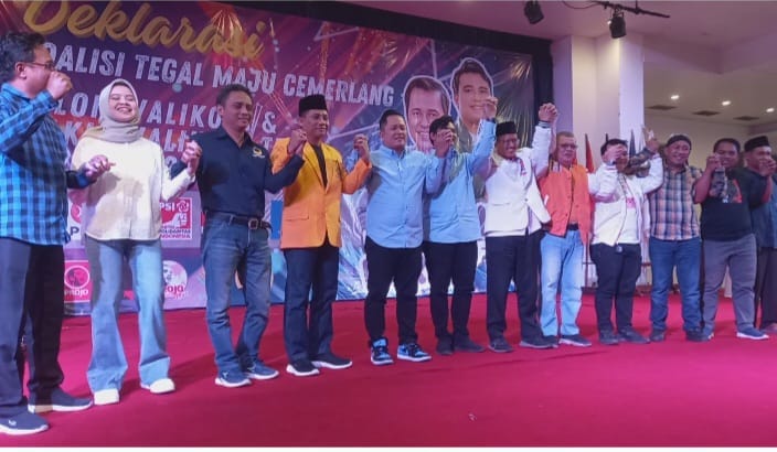 SEJUMLAH partai di Kota Tegal, Jawa Tengah, yang tergabung dalam Koalisi Tegal Maju Cemerlang (KTMC), resmi mendeklarasikan Faruq Ibnul Haqi dan Muhammad Ashim AdzDzorif Fikri untuk berlaga pada Pemilihan Kepala Daerah (Pilkada) Kota Tegal 2024.
