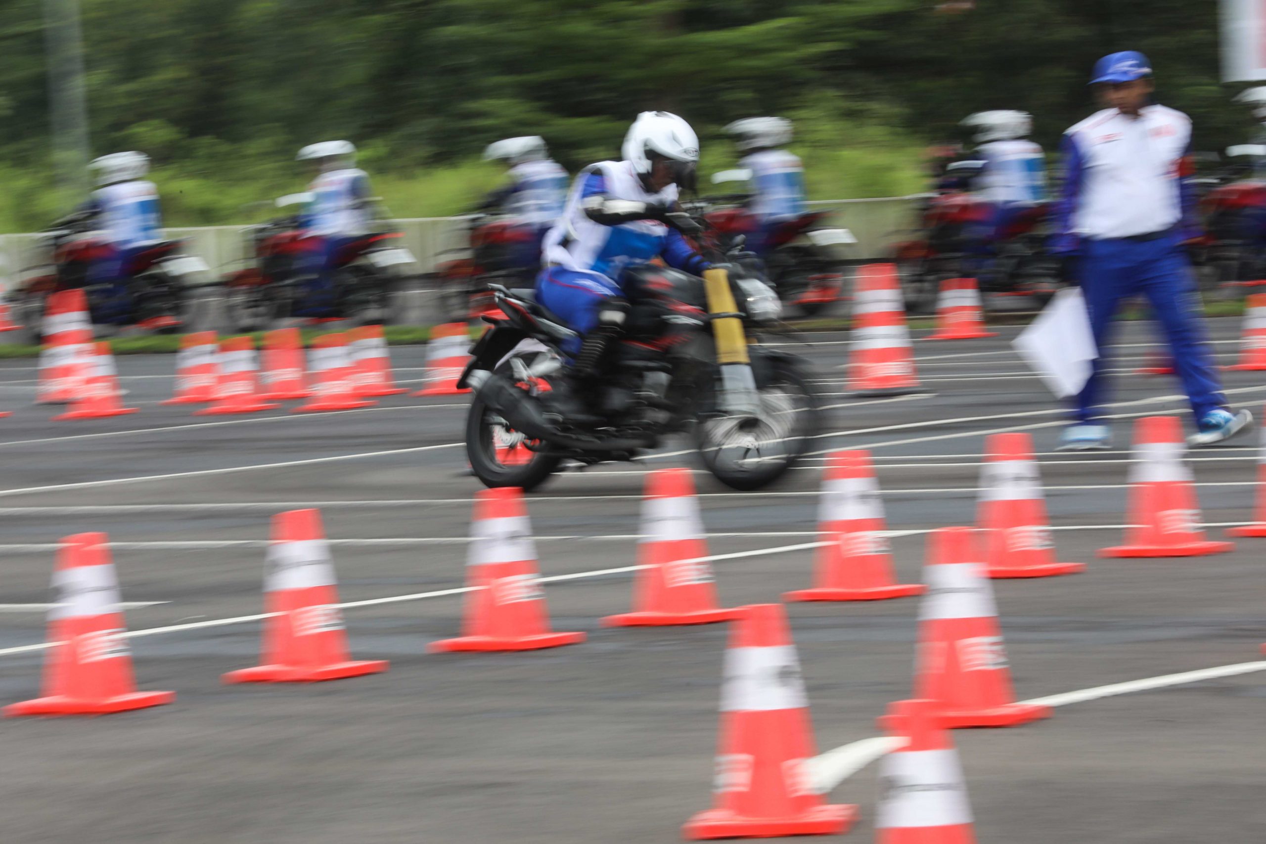 Peserta melakukan manuver dengan motornya Demi mengikuti gelaran The 16th Astra Honda Safety Riding Instructors Competition (AHSRIC) 2025 di AHM Safety Riding & Training Center (AHSRTC), Cikarang, Bekasi, Jawa Barat, Rabu (18/6/2025). Kompetisi keselamatan berkendara yang diikuti 120 instruktur safety riding, 2.690 advisor safety riding dari dealer Honda, dan 916 advisor dari komunitas Honda di seluruh Indonesia itu diuji keterampilan berkendara dan kemampuannya dalam mengedukasi keselamatan berkendara yang efektif Demi peningkatan kesadaran atas prediksi bahaya di jalan raya. MI/RAMDANI