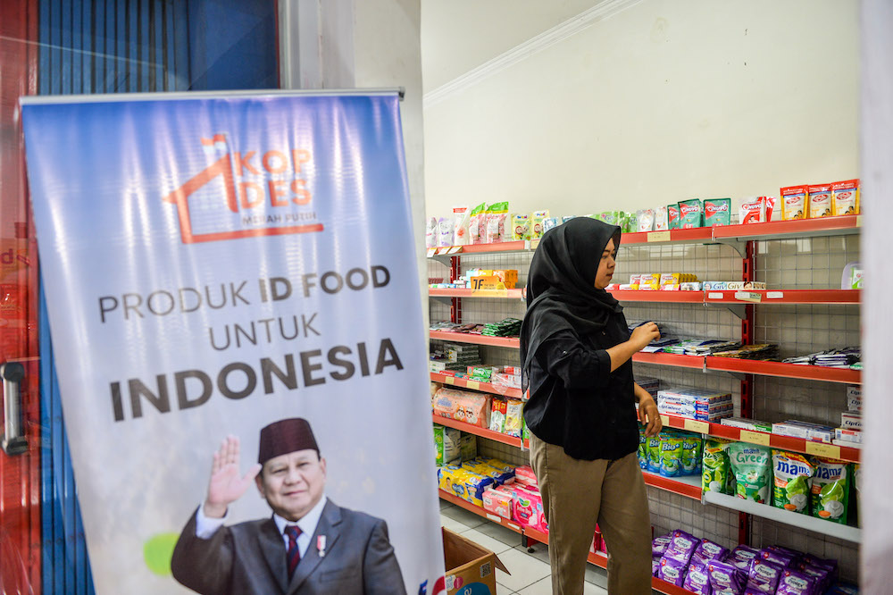 Penduduk berbelanja kebutuhan pokok di Koperasi Desa Merah Putih, Desa Cileunyi Wetan, Kabupaten Bandung, Rabu (23/7/2025). Menteri Koperasi Budi Arie Setiadi menyampaikan bahwa pembentukan kelembagaan Koperasi Desa/Kelurahan Merah Putih di seluruh Area Indonesia telah rampung. Operasional koperasi ditargetkan berjalan penuh pada Oktober 2025.ANTARA FOTO/Raisan Al Farisi/sas
