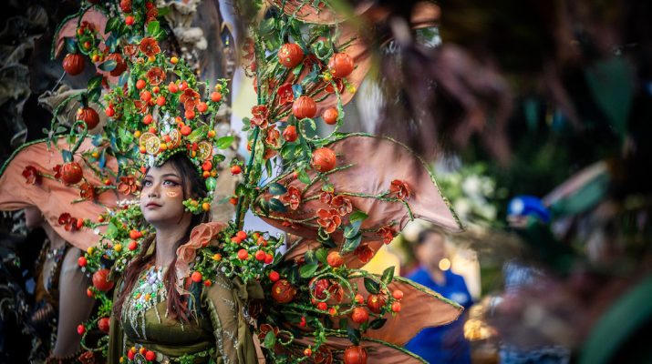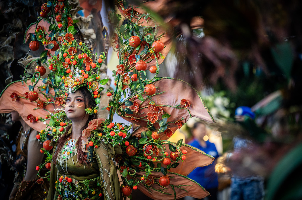 Model menggunakan kostum Ciptaan Demi Fashion Show Pangan Indonesia PAN Awards 2025 di Jakarta, Minggu (24/8/2025). Fashion show tersebut menampilkan berbagai kostum Ciptaan pangan dengan mengusung tema Bantu Pangan, Bantu Rakyat. ANTARA FOTO/Bayu Pratama S/sas