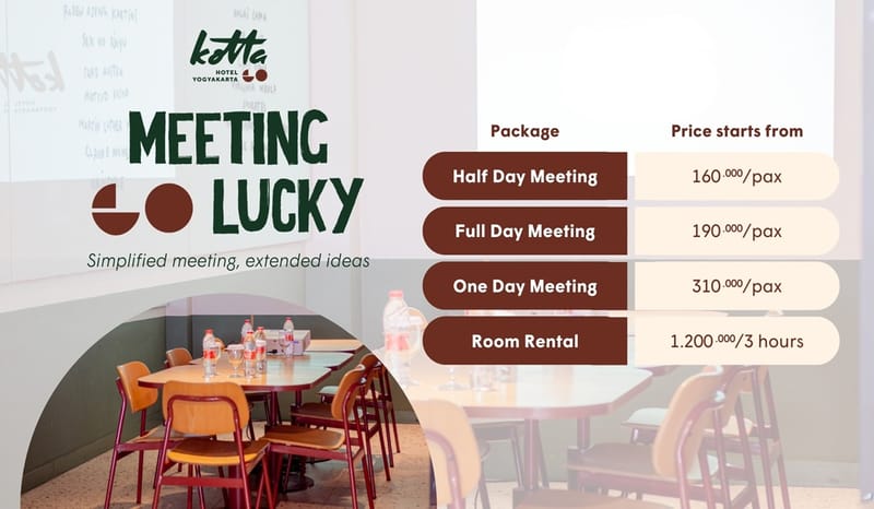 Kali ini, Kotta GO Yogyakarta dan Piyama Café menghadirkan sebuah meeting package yaitu Meeting GO Lucky.