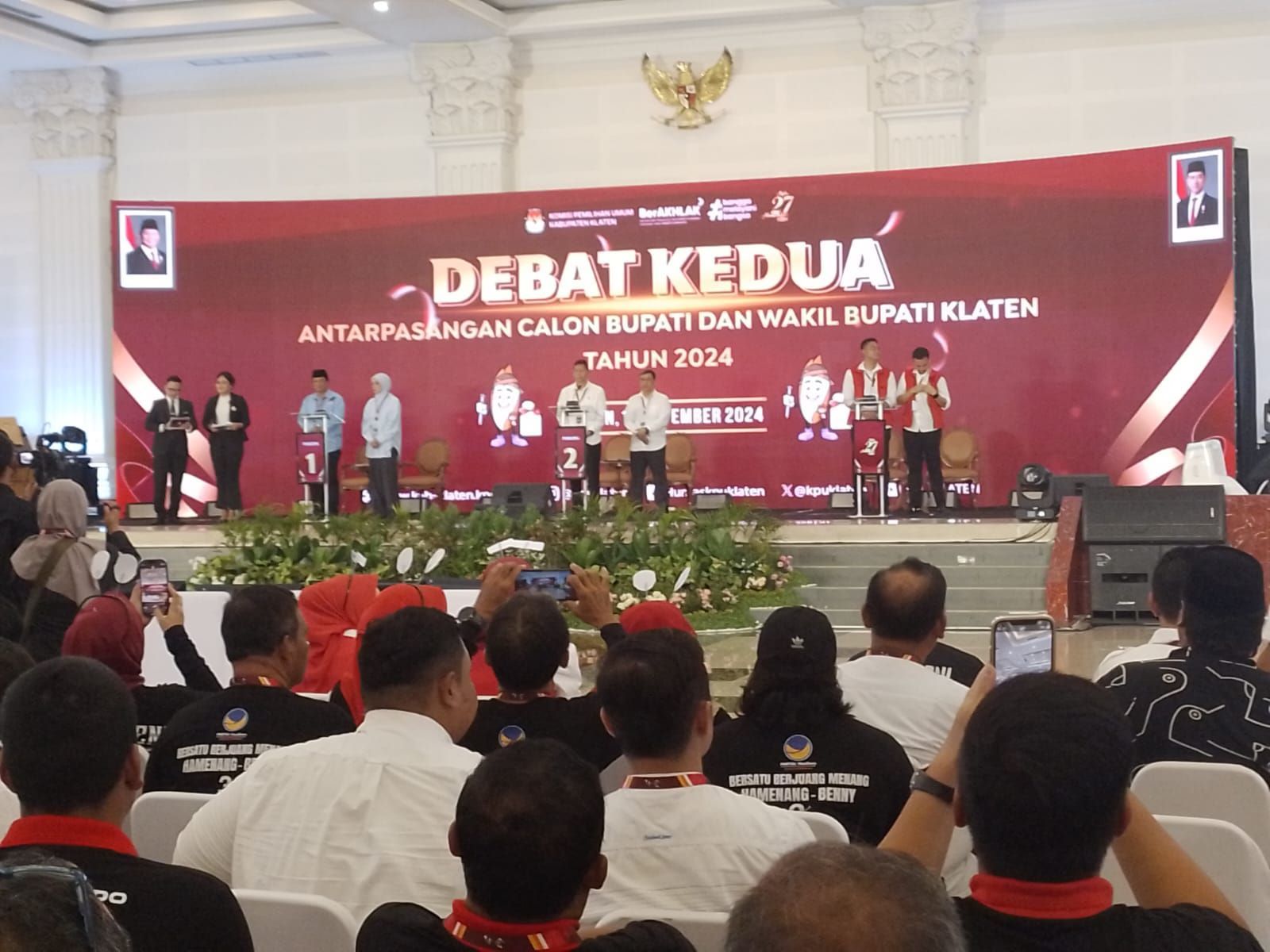 Debat kedua calon bupati dan wakil bupati Klaten 2024, disiarkan stasiun televisi swasta dan dihadiri Forkopimda, Bawaslu, Ormas, serta tokoh Keyakinan dan masyarakat.