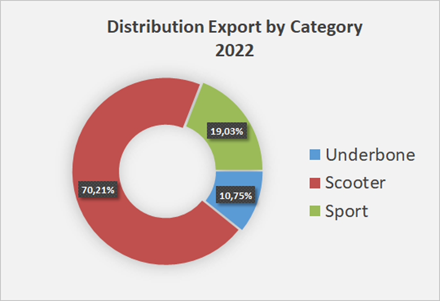 Skuter Menguasai 70,21% dari jenis Motor yang terekspor dari Indonesia. Bilangan ini Tak setimpang penjualan Domestik. disusul Tipe sport sebanyak 19,03% dan Underbone sebanyak 10,75%.