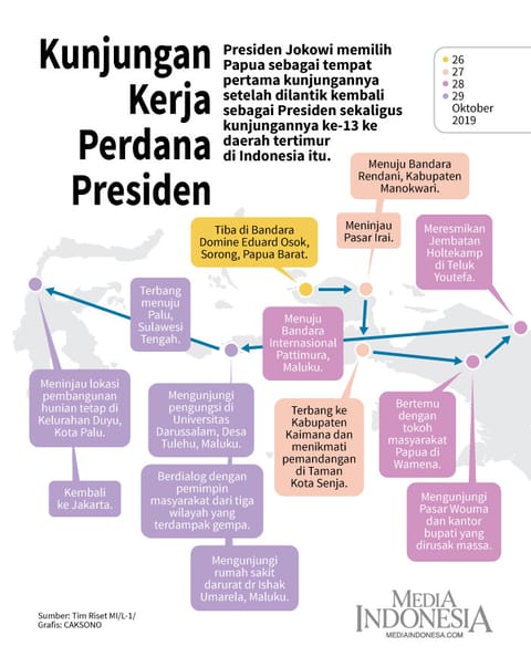 Infografis 20/11/2024 Kunjungan Kerja Perdana Presiden Diposkan Oleh:administrator infografis(caksono) Presiden Jokowi memilih Papua sebagai tempat pertama kunjungannya setelah dilantik kembali sebagai Presiden sekaligus kunjungannya ke-13 ke daerah tertimur di Indonesia itu. Cek Artikel: Radar Canggih untuk Pertahanan Udara Indonesia