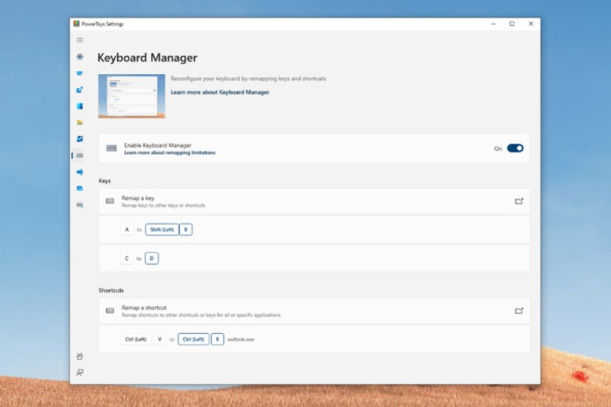 • Keyboard Manager: Mengubah fungsi tombol keyboard.