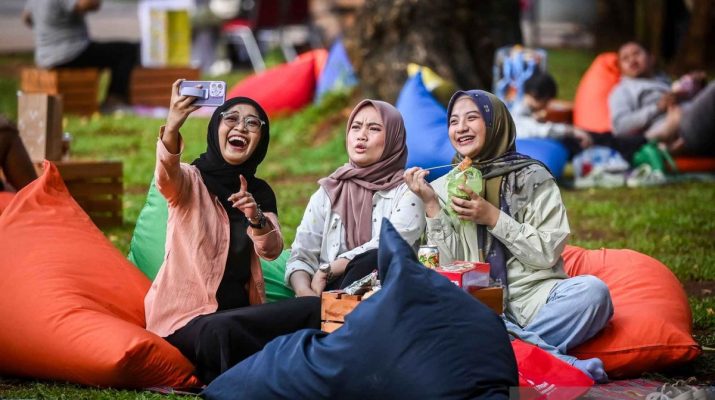 Pengunjung piknik pada acara Semasa Piknik di Lapangan Banteng, Jakarta, Jumat (31/5/2024). Semasa Piknik merupakan acara yang menggabungkan antara pelaku ekonomi kreatif, seni budaya, serta komunitas bersejarah bertemakan piknik yang diselenggarakan dari 31 Mei Tiba 2 Juni 2024. ANTARA FOTO/Rivan Awal Lingga/nym.