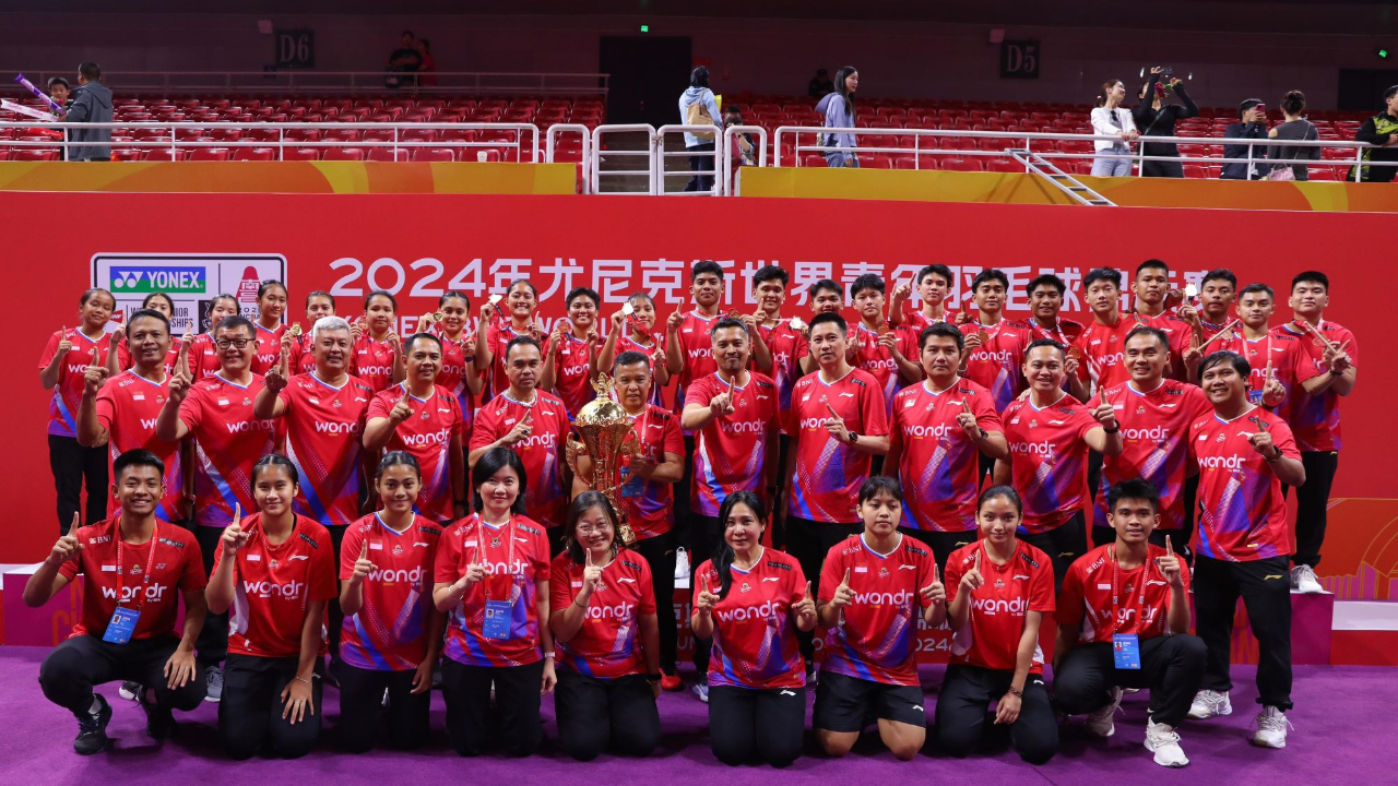 Nanchang: Indonesia berhasil mengamankan Piala Suhandinata setelah mengalahkan Tiongkok di final Kejuaraan Dunia Junior Bulu Tangkis 2024. Indonesia menang dengan skor 110-103 atas Tiongkok.