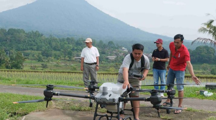 Penduduk menyiapkan drone atau pesawat udara tanpa awak Demi pemupukan Begitu berlatih di lahan persawahan Desa Jatiluwih, Tabanan, Bali, Jumat (17/1/2025). Latihan penggunaan drone pertanian tersebut diikuti empat pemuda sebagai pilot drone Demi membantu para petani Begitu melakukan pemupukan sehingga Ekonomis waktu dalam bertani serta upaya menciptakan pertanian organik di desa itu. ANTARA FOTO/Nyoman Hendra Wibowo/Per