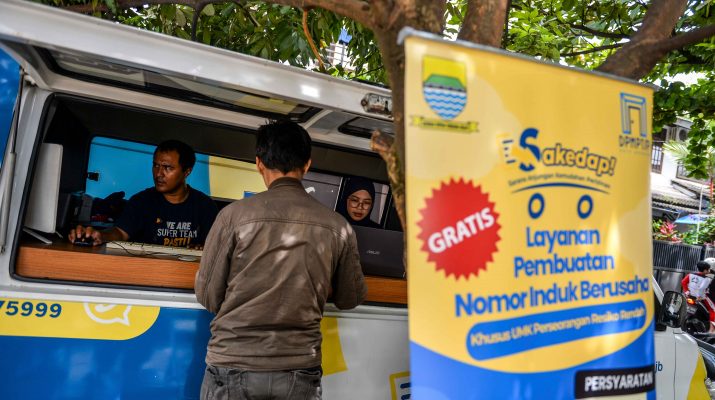 Petugas Dinas Penanaman Modal dan Pelayanan Terpadu Satu Pintu melayani Anggota yang akan Membangun Nomor Induk Berusaha (NIB) Begitu pelayanan jemput bola di Jalan Nilem, Bandung, Jawa Barat, Rabu (19/2/2025). Pemerintah Kota Bandung melakukan pelayanan jemput bola bagi masyarakat yang akan Membangun NIB dalam upaya meningkatkan akses dan kenyamanan bagi pelaku usaha mikro melalui program Sakedap (Sarana Anjungan Kemudahan Perizinan). ANTARA FOTO/Raisan Al Farisi/Ppj