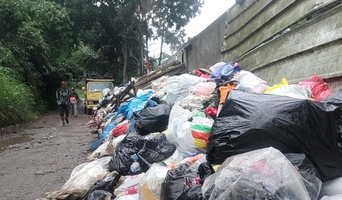MASYARAKAT mengeluhkan tumpukan sampah yang nyaris menutupi badan jalan di Kampung Cijengkol, Desa Wangunsari, Kecamatan Lembang, Kabupaten Bandung Barat. Kondisi ini menyebabkan jalan menjadi licin dan menimbulkan bau tak sedap hingga viral di media sosial.