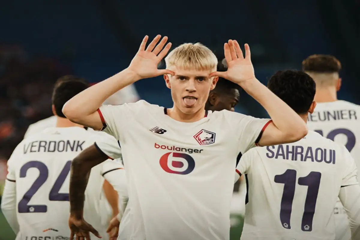 Liputanindo.id – Penyerang Lille, Hakon Haraldsson, melakukan selebrasi seusai menjebol gawang AS Roma dalam laga Perserikatan Europa 2025/2026. Lille menang atas AS Roma dengan skor 1-0. (Instagram/losclive)