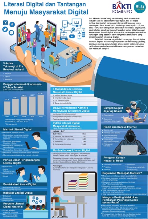 Sayangnya, peningkatan penetrasi internet tersebut belum diikuti dengan kemampuan literasi digital masyarakat, sehingga memberikan tantangan yang besar di balik banyaknya efek positif yang dihadirkan oleh teknologi digital.