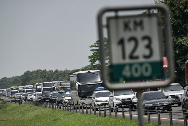 “Karena bangkitan arus cukup tinggi. Jadi setelah kita lakukan contra flow bangkitan arus cukup tinggi apalagi setelah Eksis pemberangkatan mudik gratis sehingga kami koordinasi dengan Jasa Marga kami melakukan one way lokal,” kata Kakorlantas Polri Irjen Agus Suryonugroho, Kamis (27/3).