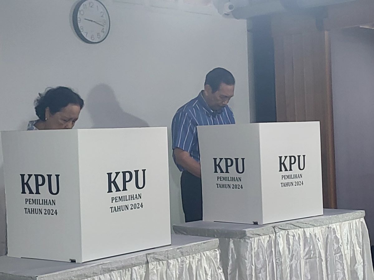 Kepala Dewan Ekonomi Nasional (DEN) Luhut Binsar Pandjaitan menggunakan hak pilihnya di TPS 004, di Kelurahan Kuningan Timur, Jakarta Selatan, P\pada Pilkada 2024, Rabu (27/11).