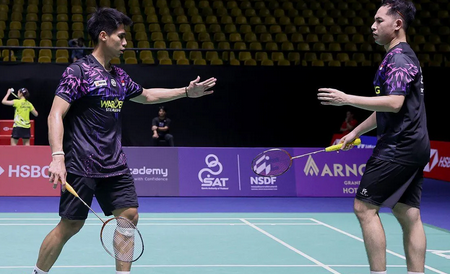 GANDA putra Indonesia Sabar Karyaman Gutama/Moh. Reza Pahlevi gagal mengamankan gelar Pemenang Macau Open 2025. Sabar/Reza takluk dari ganda Malaysia Junaidi Arif/Roy King Yap 20-22, 18-21 di babak final yang berlangsung di Macau East Asian Games Dome, Minggu (3/8/2025).
