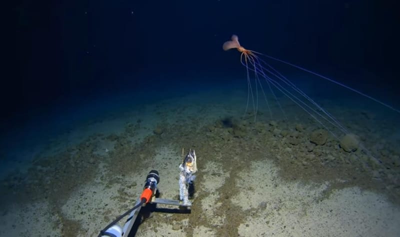 REKAMAN yang diambil dari kedalaman Palung Tonga di Pasifik Selatan baru-baru ini berhasil menangkap momen langka saat cumi-cumi sirip besar (Magnapinna) sedang bergerak dengan mengandalkan tentakelnya yang luar biasa panjang, mencapai sekitar 13 kaki. Makhluk misterius ini terlihat pada kedalaman 10.800 kaki (3.300 meter) di bawah permukaan laut, dan gambar-gambar tersebut diambil oleh tim penjelajah bawah air yang dikerahkan oleh Pusat Penelitian Laut Dalam Minderoo-UWA.