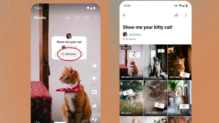 Tampilan stiker “Add Yours” di Shorts memiliki desain mirip dengan yang ada di Instagram sehingga pengguna akan lebih mudah menemukannya.