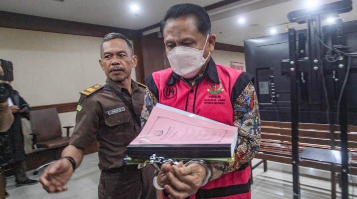 Terdakwa mantan Ketua PN Surabaya, Rudi Suparmono, menjalani sidang pembacaan tuntutan di Pengadilan Tipikor, Jakarta, Senin (28/7/2025). Tim jaksa menuntut terdakwa Rudi dengan pidana penjara selama tujuh tahun dan denda sebesar Rp750 juta karena diyakini menerima gratifikasi senilai SGD43 ribu atau Sekeliling Rp548 juta dalam kasus vonis bebas Gregorius Ronald Tannur terkait Kematian Pagi Sera Afrianti. Fulus itu diterima Rudi dari pengacara Ronald, Lisa Rachmat. MI/USMAN ISKANDAR/sas