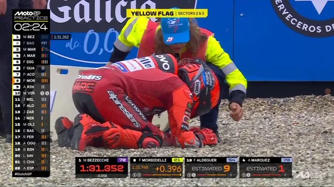 liputanindo.com – Di hari Jumat, Hari pertama race weekend MotoGP Assen 2025, Pimpinan Klasmeen sementara Kelas MotoGP, Marc Marquez mengalami dua kali Crash kencang ; Highside Ketika FP1 yang menghabiskan 22 menit waktunya dan Low Side pada Sesi Practice yang mengakhiri sesi Marc lebih Segera