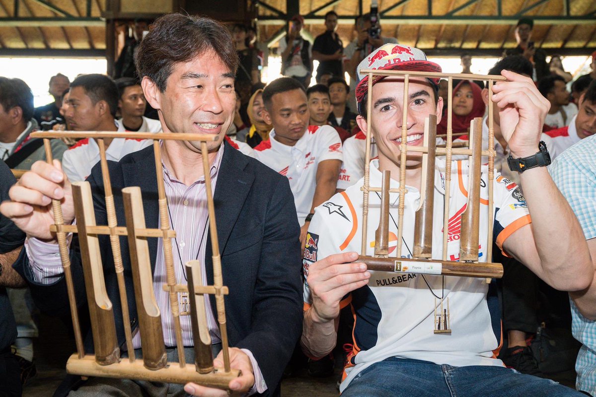 Sesampai di SAU Marc Duduk di tempat Normal, diapit oleh BOD AHM, Direktur HRC tetsuhiro Kuwata dan Juga Enggak lupa para pembalap AHRT. Di awal awal Marc Marquez disuguhi gelaran Musik dan tarian Medley Khasanah Kebudayaan Indoensia mulai dari barat ke timur. Dari sini sudah mulai terlihat raut Muka Marc Mulai Segar dan Terhibur