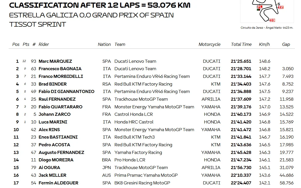 Hasil Akhir Sprint Race MotoGP Jerez 2026