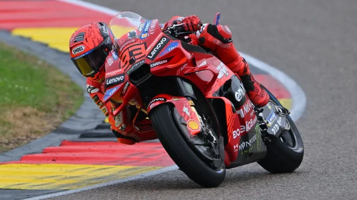 liputanindo.com – Meski Hujan sudah Reda, Trek Lagi dalam Keadaan Basah di awal dari 15 Lap Sprint Race MotoGP Sachsenring 2025. Marc Marquez start dari Posisi Pole diikuti Zarco dan Bezzecchi di Row terdepan. Temperatur permukaan aspal Trek Eksis di 18° C dan Penggunaan Ban Umumnya Medium-soft. .