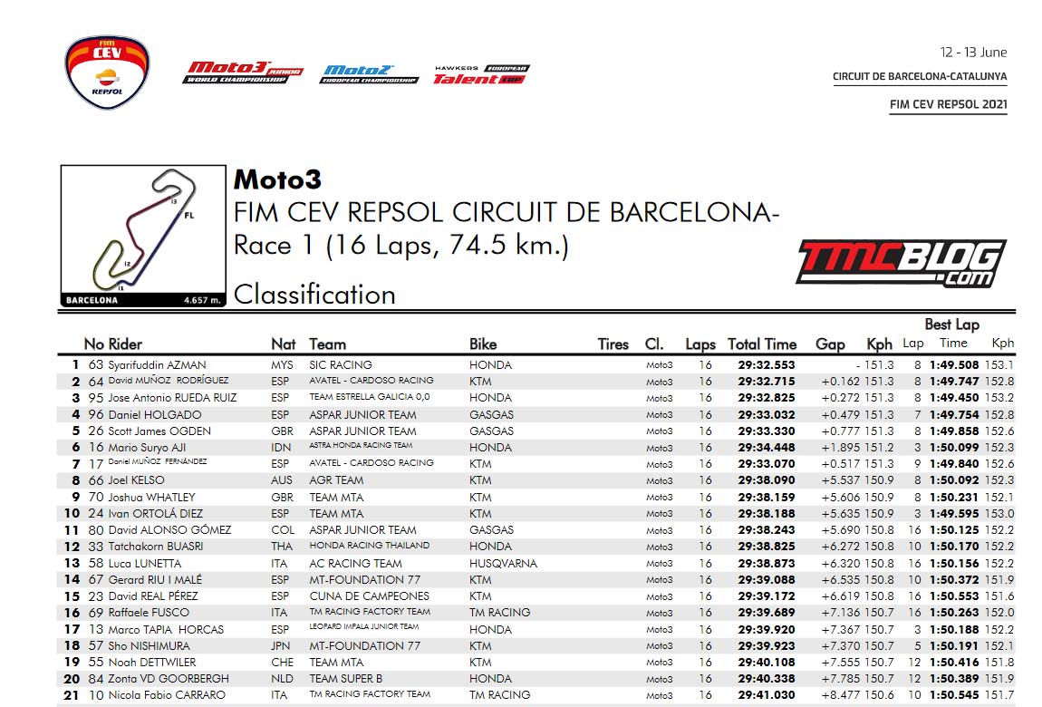 Tetapi akhirnnya hasil Final menempatkan Mario Aji di Posisi 6 setelah Daniel Munoz diturunkan Oleh RD Ke posisi 7 dari awalnya Finish Posisi 5. Race sendiri dimenangkan Oleh Syarifuddin Azman dari Malaysia . . Kita simak race 2 Mulai jam 19 nanti