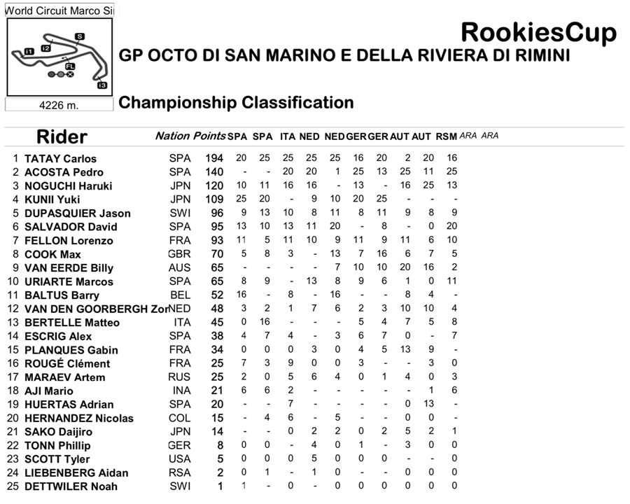 Dan ini merupakan Posisi Finish 10 ke tiga kalinya selama lima kali Mario ikut Race di RBRC musim 2019 Tiba Race ke 10. Mario sempat absen melewati 5 Race dikarenakan recovery cidera dan permasalahan Visa. RBRC menyisakan dua Balap Tengah Yakni dua race di Aragon Nanti.