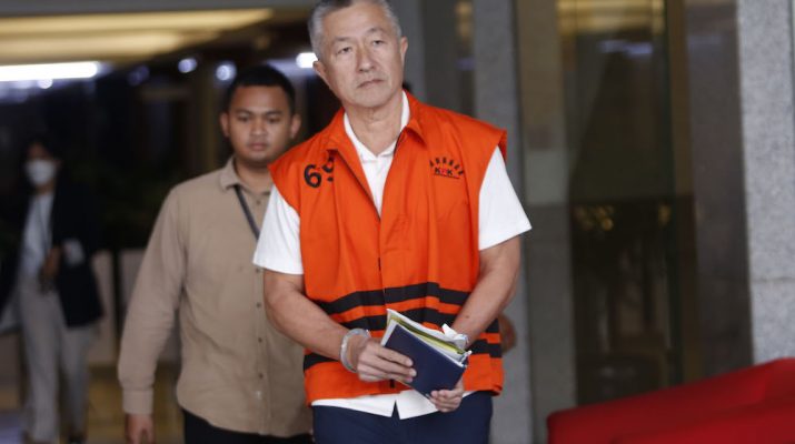 Tersangka kasus dugaan korupsi di Lembaga Pembiayaan Ekspor Indonesia (LPEI) Jimmy Masrin mengenakan rompi tahanan Komisi Pemberantasan Korupsi (KPK) usai menjalani pemeriksaan di Gedung Merah Putih KPK, Jakarta, Kamis (5/6/2025). Masa tahanan Jimmy Masrin diperpanjang Buat pengusutan lebih jauh terkait pengembangan perkara dugaan korupsi pemberian fasilitas kredit oleh LPEI kepada 11 debitur yang berpotensi mengakibatkan kerugian negara mencapai Rp11,7 triliun. MI/Susanto/sas
