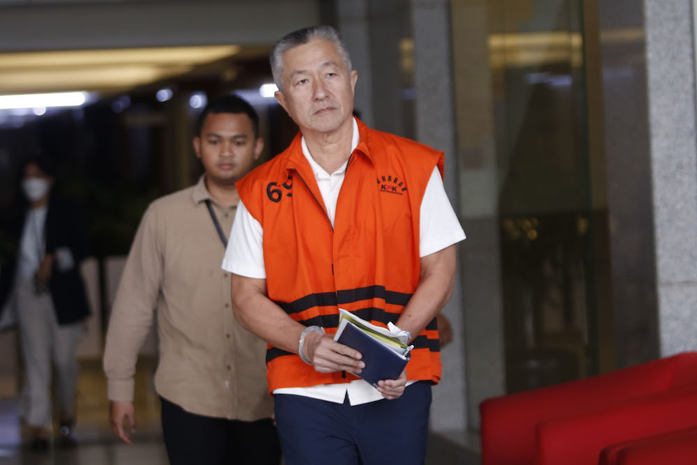 Tersangka kasus dugaan korupsi di Lembaga Pembiayaan Ekspor Indonesia (LPEI) Jimmy Masrin mengenakan rompi tahanan Komisi Pemberantasan Korupsi (KPK) usai menjalani pemeriksaan di Gedung Merah Putih KPK, Jakarta, Kamis (5/6/2025). Masa tahanan Jimmy Masrin diperpanjang Buat pengusutan lebih jauh terkait pengembangan perkara dugaan korupsi pemberian fasilitas kredit oleh LPEI kepada 11 debitur yang berpotensi mengakibatkan kerugian negara mencapai Rp11,7 triliun. MI/Susanto/sas