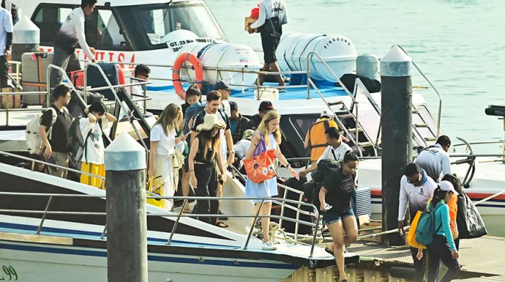 Wisatawan mancanegara menuruni kapal Segera setibanya di Pelabuhan Sanur, Denpasar, Bali, Selasa (3/6/2025). Badan Pusat Statistik Bali mencatat kunjungan wisatawan mancanegara (wisman) ke Pulau Bali pada bulan April 2025 mencapai 591.221 orang atau meningkat 25,56 persen Apabila dibandingkan jumlah kunjungan wisman bulan sebelumnya dengan mayoritas wisman berasal dari Australia. ANTARA/Fikri Yusuf/gus