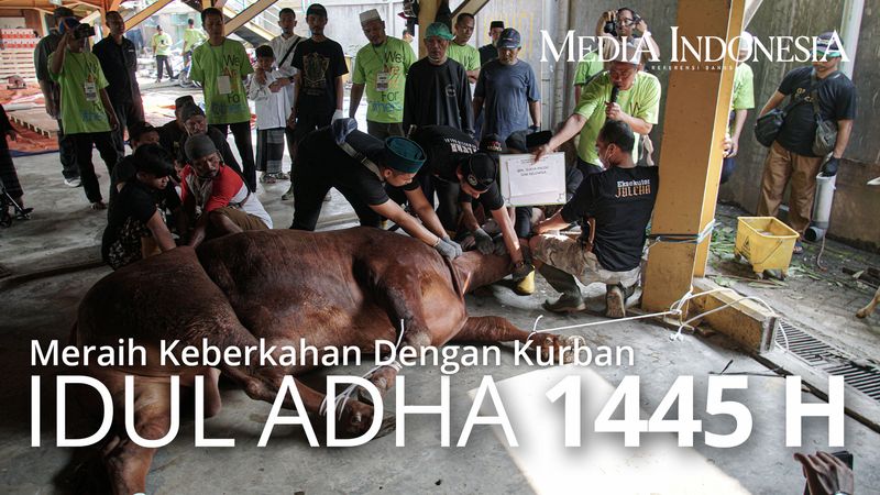 Sebagai agenda rutinan di hari raya Idul Adha, Media Group menyalurkan hewan kurban untuk karyawan dan warga sekitar kantor Media Group di halaman Masjid Nursiah Daud Paloh, Kedoya, Jakarta Barat, Senin (17/6/2024).
