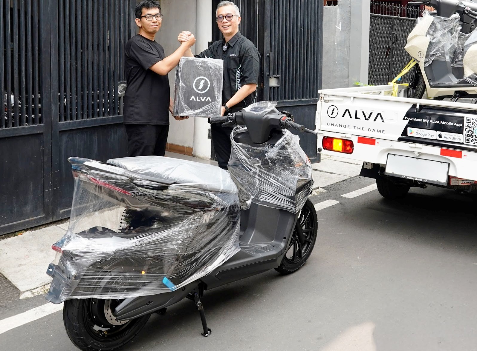 ALVA menyerahkan unit motor listrik Alva N3 di kediaman pelanggan di area Jabodetabek. Pengiriman sudah dilakukan secara berkala sejak 11 April 2025.