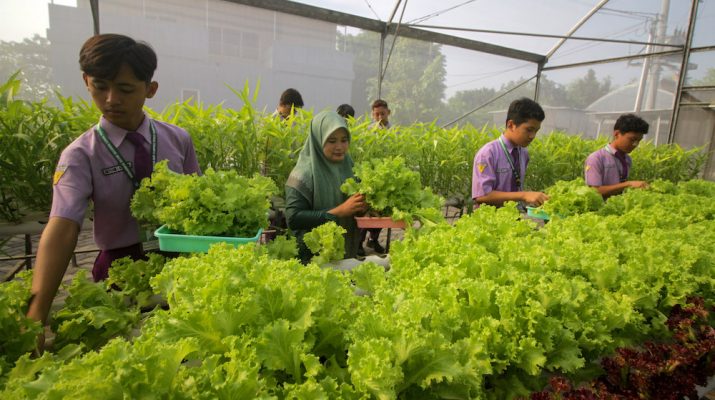 Santri memanen sayuran hasil budi daya Sendiri dengan menggunakan metode hidroponik di Green House Pondok Pesantren Progresif Bumi Shalawat Sidoarjo, Jawa Timur, Rabu (18/6/2025).Kegiatan tersebut selain Kepada memenuhi kebutuhan pangan internal pesantren juga Kepada melatih santri dalam bidang agrikultur modern yang berorientasi bisnis. ANTARA FOTO/Umarul Faruq/sas